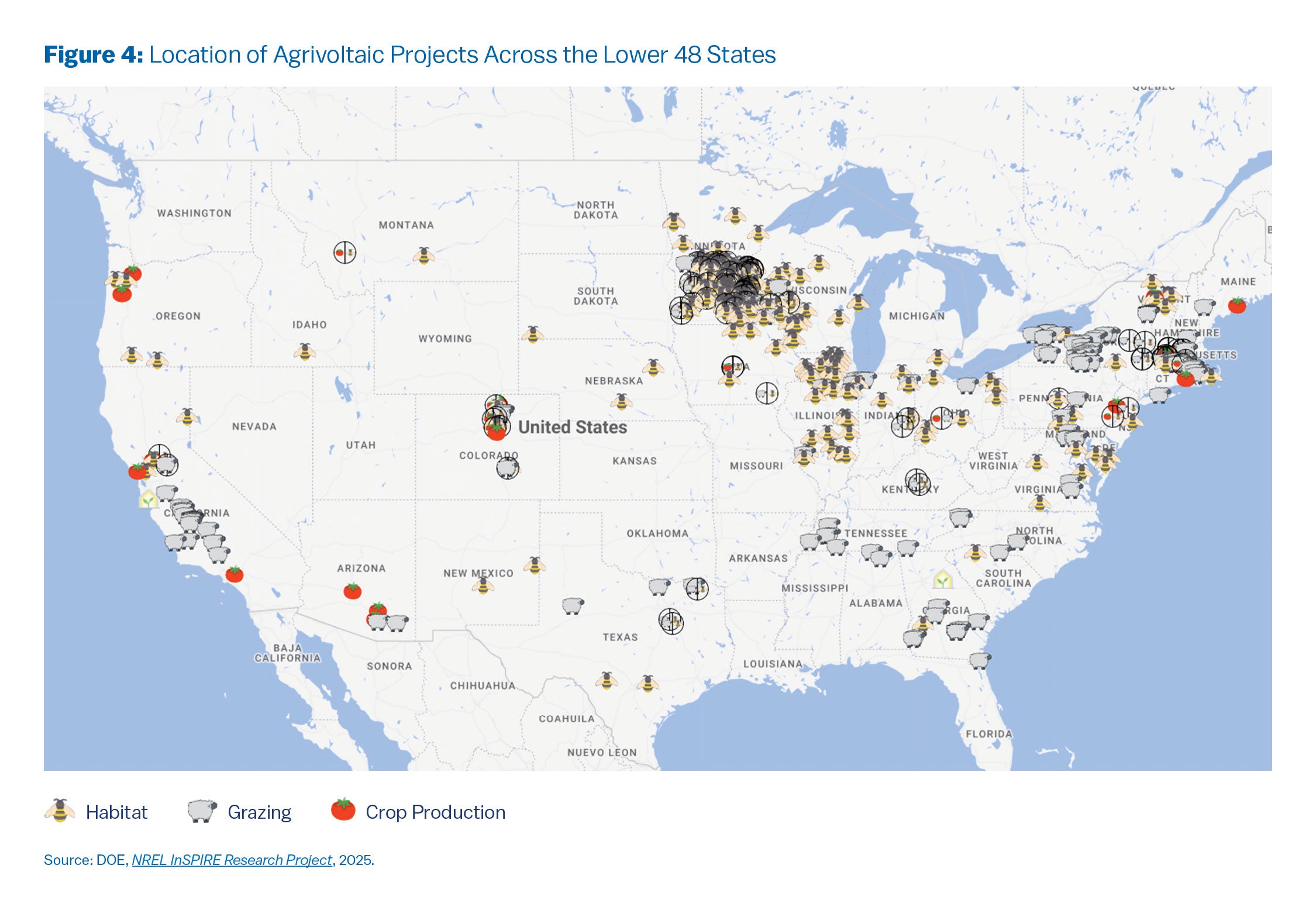 U.S. Department of Energy. National Renewable Energy Laboratory. 2025. “Agrivoltaics Map.” https://openei.org/wiki/InSPIRE/Agrivoltaics_Map. Accessed February 12, 2025.